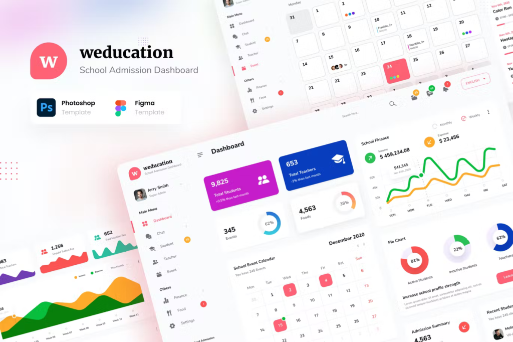 Modern dashboard User Interface design template for school admission. This template is ideal for school registration, school admin, school admission, and any admin dashboard website.